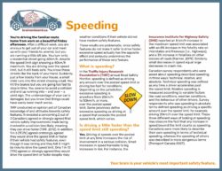 Speed not only affects crash risk, but it is also directly related to crash severity. Driving at a faster rate of speed increases the total amount of kinetic energy, which in turn increases the risk of severe injury in a collision. In addition, faster speeds make it more likely the safety thresholds of the vehicle and safety devices will be exceeded in the event of a crash. This erodes the protection available to vehicle passengers.