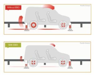 EBFD is likely to be most useful on front-engine vehicles, sport utility vehicles (SUVs), and heavily loaded vehicles. Front-engine vehicles are more likely to experience rear-wheel braking inefficiency during heavy braking because of the extra weight at the front of the vehicle. EBFD compensates for the weight differences across the vehicle. SUVs are taller than regular vehicles and therefore have a higher centre of gravity, making them inherently more unstable and prone to a driver losing control. The yaw sensor in EBFD helps correct any potentially dangerous side-to-side motion. Finally, if you are driving a vehicle that is heavily loaded or unevenly loaded, EBFD will sense the position and amount of extra weight and adjust brake-force accordingly. It is important to remember, however, that EBFD is designed to be helpful in all types of vehicles, and you do not need to be driving a front-engine vehicle, SUV, or heavily loaded car to feel the benefits of EBFD.