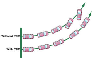 Traction control monitors the wheels on the vehicle for potential wheel slip. When a vehicle’s wheels are slipping, you will feel like your tires are spinning but are unable to catch any grip on the road. When vehicle wheels are spinning, there is little chance of a controlled acceleration. When your traction control system senses one or more of your wheels is about to slip, it corrects the problem by applying the appropriate amount of brake to that wheel.